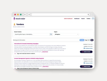 Stack Radar is the go-to portal for real-time MarTech opportunities. We scan the landscape continuously, surfacing the latest tenders and requests that organisations are uploading with full details, as soon as they go live.